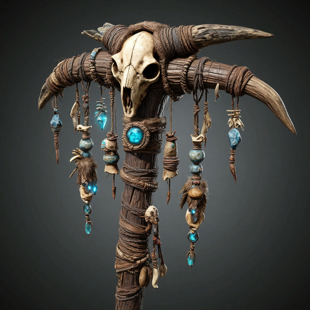 Посох Великого Шамана Гур-тушимa изготовлен из неизвестного кривого тёмного дерева и украшен кожей, костями различных существ, и разными побрякушками. По его длине расположены маленькие голубые камни, излучающие слабое свечение. Его использовал древний орк-шаман Гур - Тушим. Посох пропитан магией, что позволяет с лёгкостью применять заклинания, а так же воскрешать павших сородичей орков.