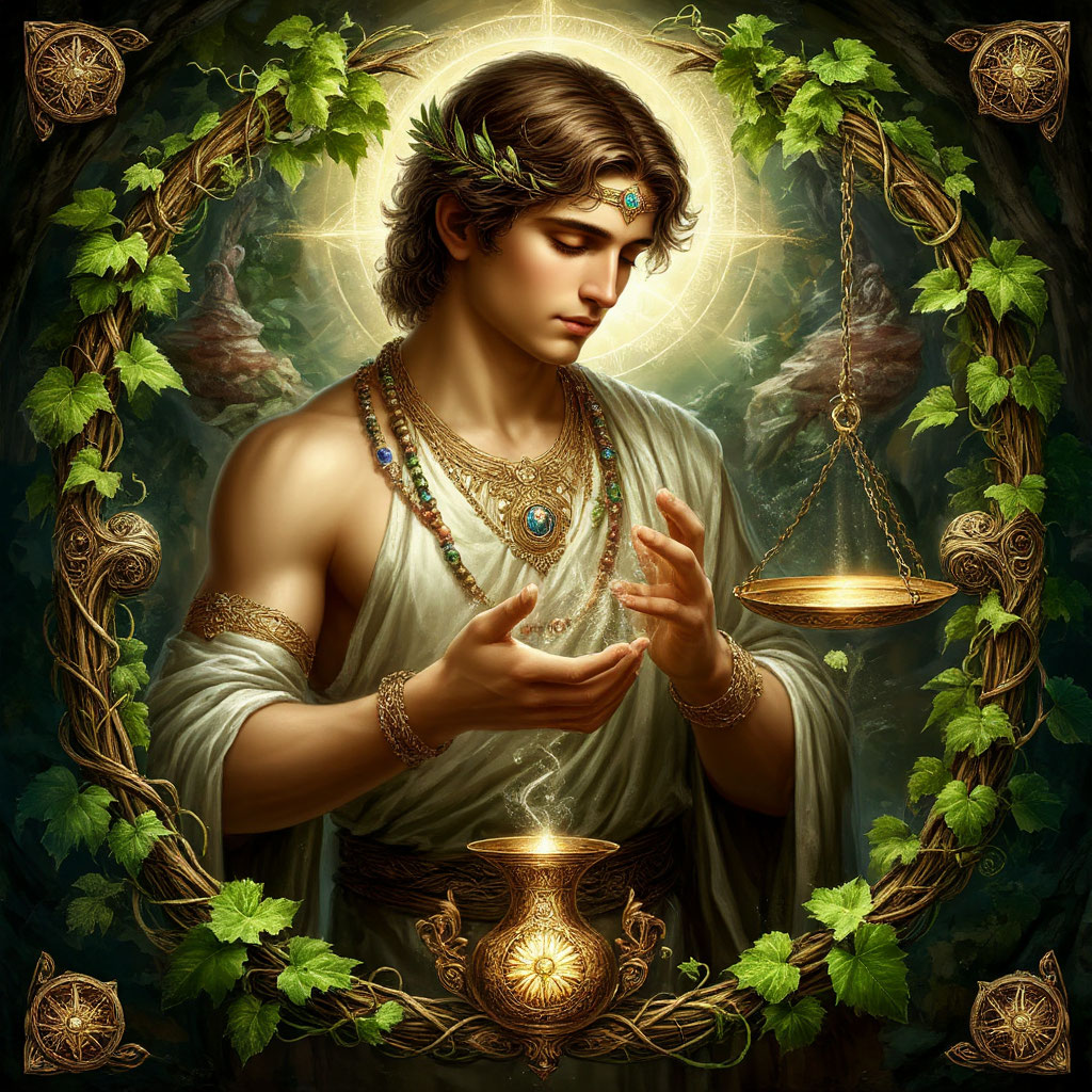 Символ : Весы обвитые лозой винограда.