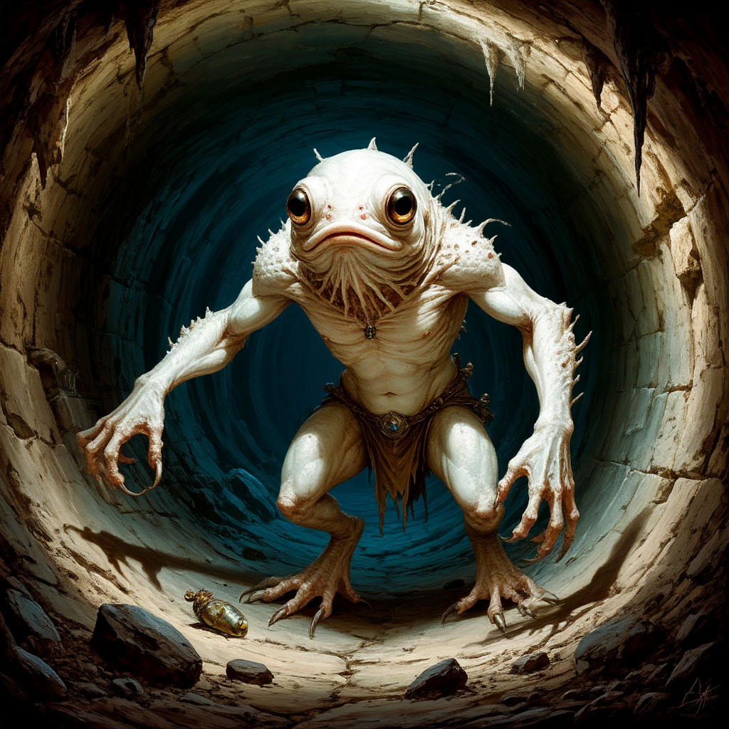 Белогши полуразумные существа которые прячутся в глубине древних подземелий, проходов и туннелей оставшихся ещё со времён Империи. С головой похожей на рыбью. Обожают блестящие вещи, вкусную еду, и вещи которые раньше никто из них не видел. Могут нападать на людей. Никто не знает откуда они взялись. Хотя некоторые считают что это люди бежавшие под землю во время распада Империи.